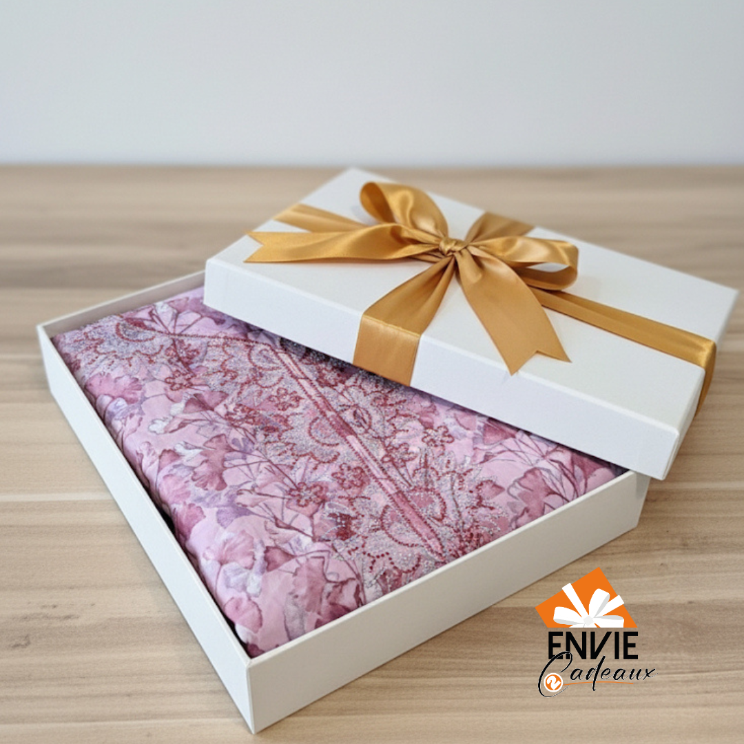 Idée cadeau pour le ramadan à offrir à une femme. Boubou de prière de luxe de Dubaï, offrez cette box à un parent, femme , mère, proche ou partenaire pour lui marquer une affection pendant cette belle période de ramadan.