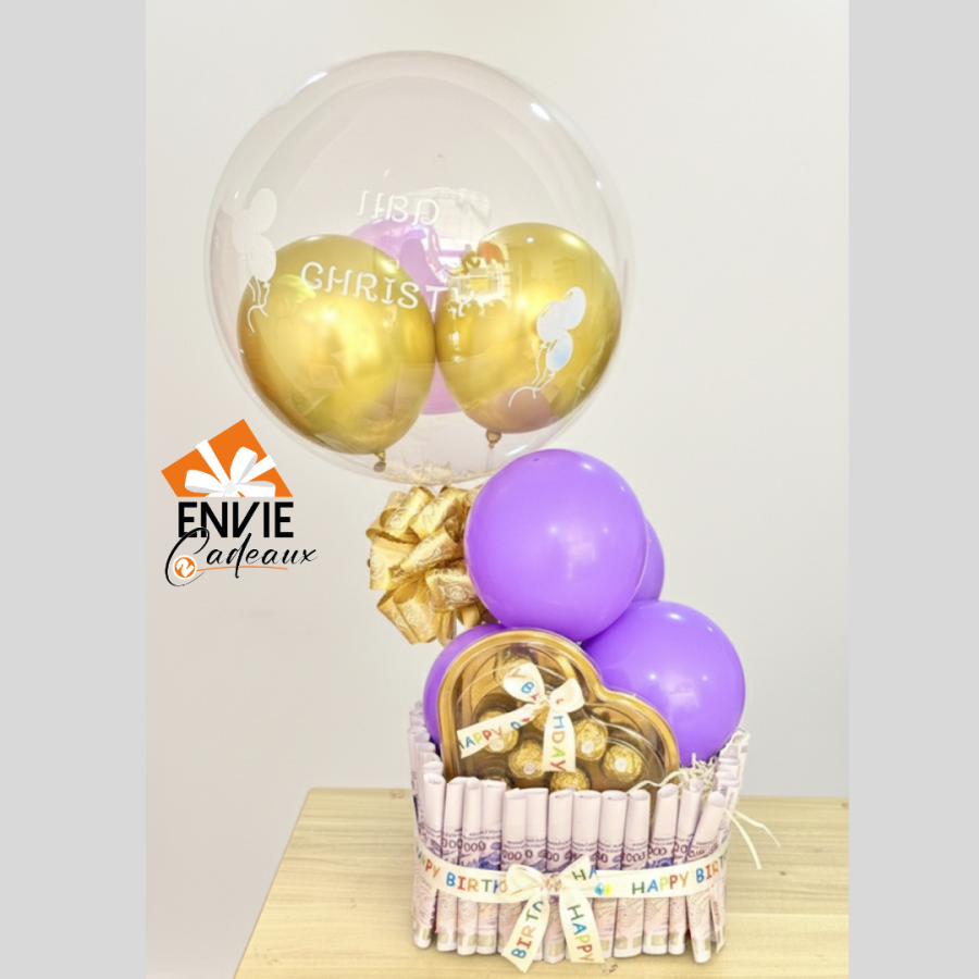 Idée cadeau argent avec des ballons personnalisés, vous donnez vous même votre argent minimum 50 billets