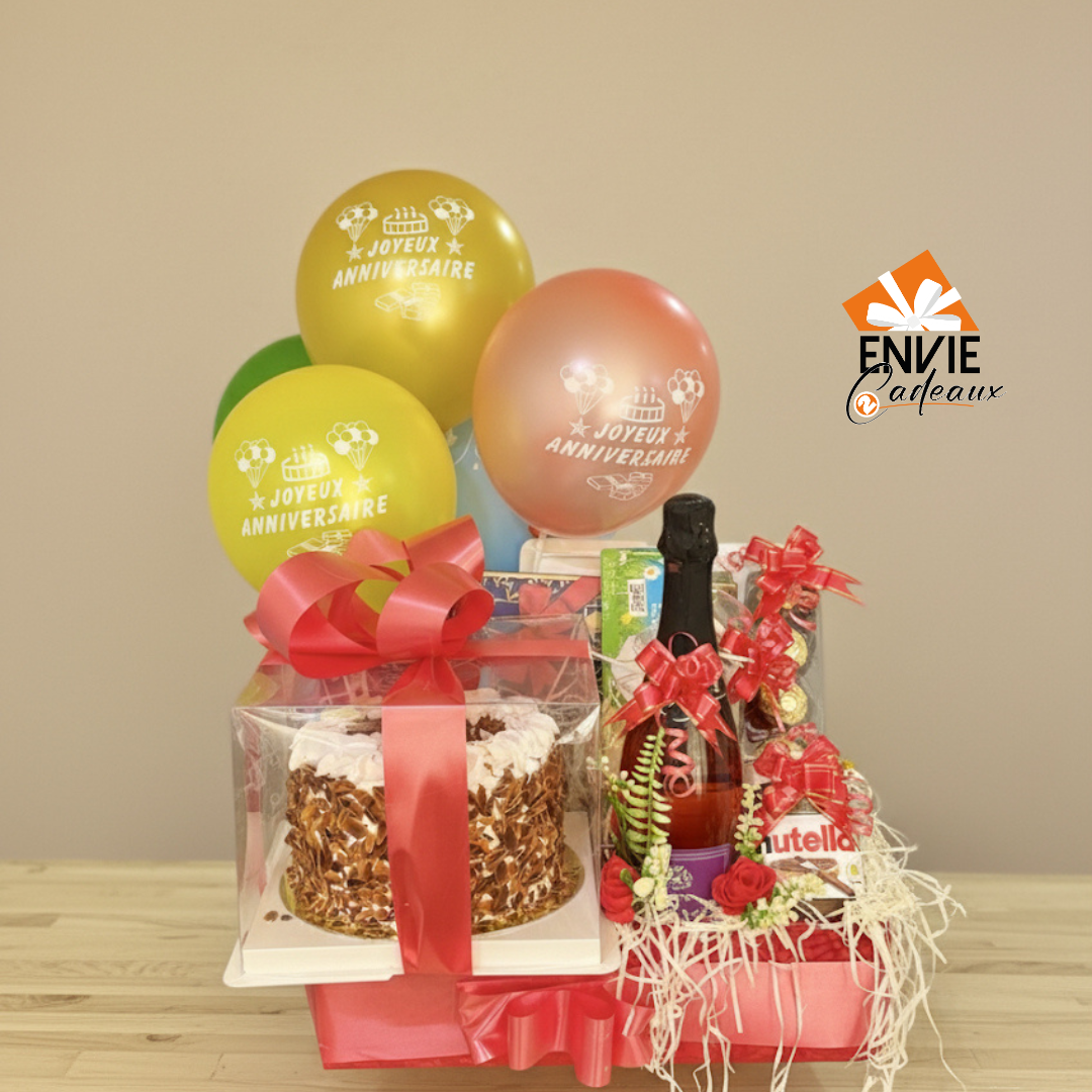 Idées cadeaux anniversaire pour femme, homme, papa, maman ou collègue. Un superbe cadeau bien décoré et aussi garni pour souhaiter un joyeux anniversaire glorieux. Passez vite votre commande sur envie2cadeaux.