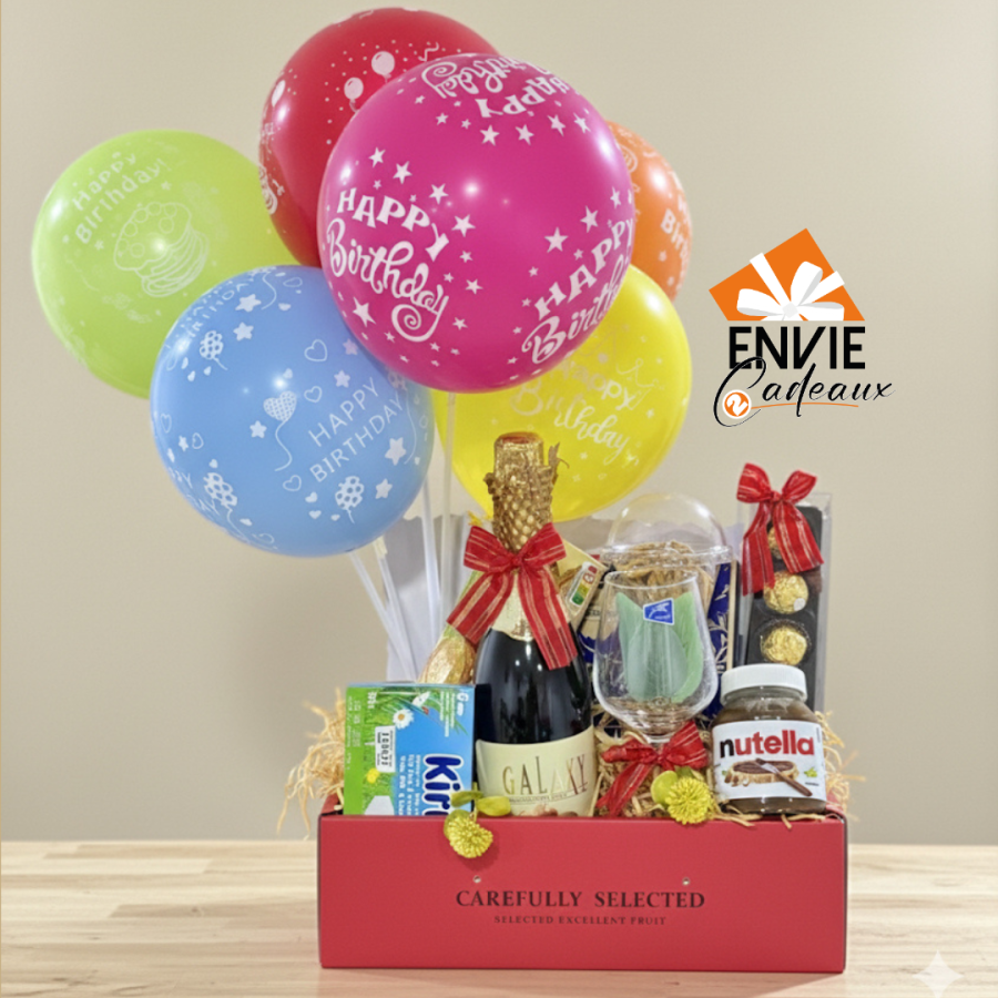 Idées cadeaux anniversaire pour femme, homme, papa, maman ou collègue. Un superbe cadeau bien décoré et aussi garni pour souhaiter un joyeux anniversaire glorieux. Passez vite votre commande sur envie2cadeaux.