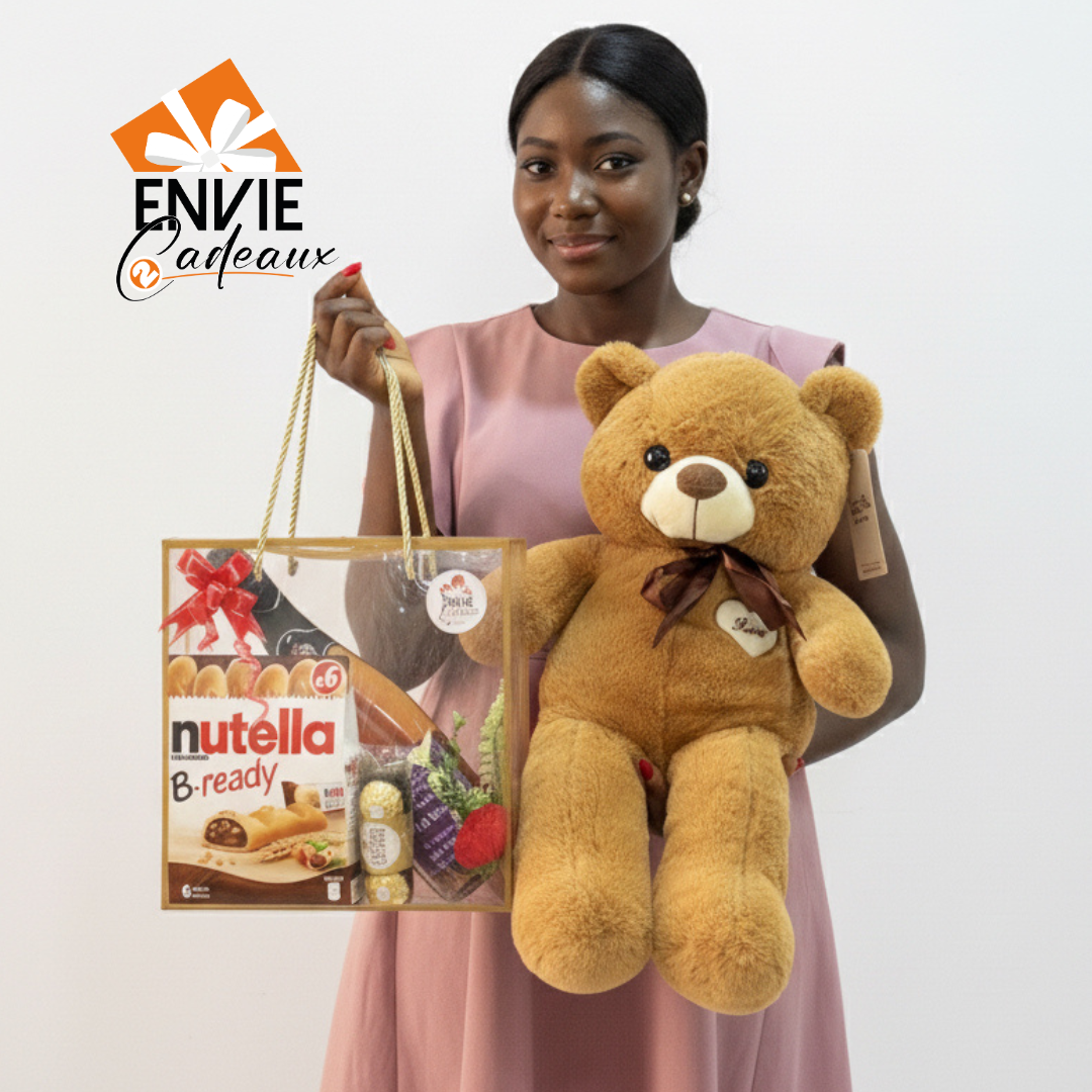 - Une peluche marron ou rose de 70 cm