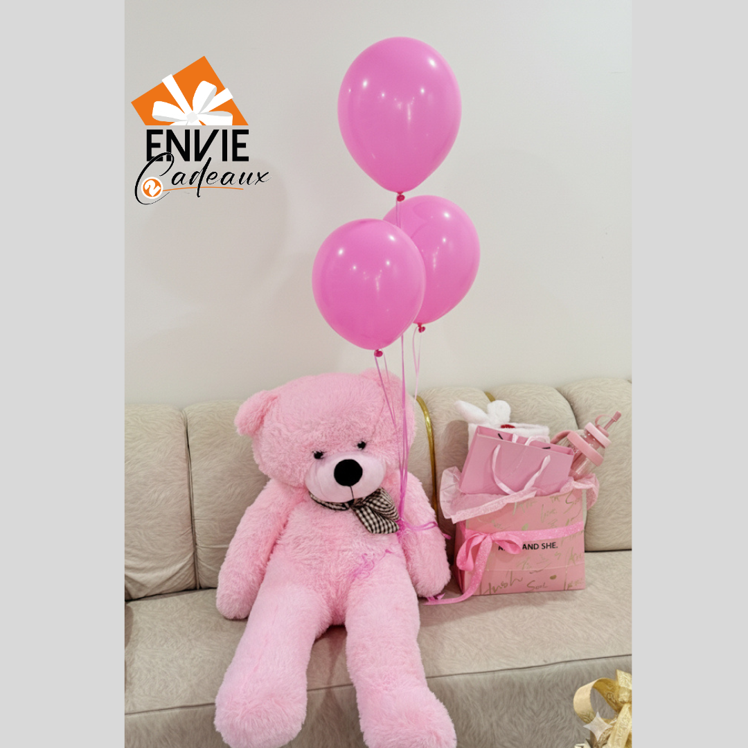 Une peluche rose de 1m4
