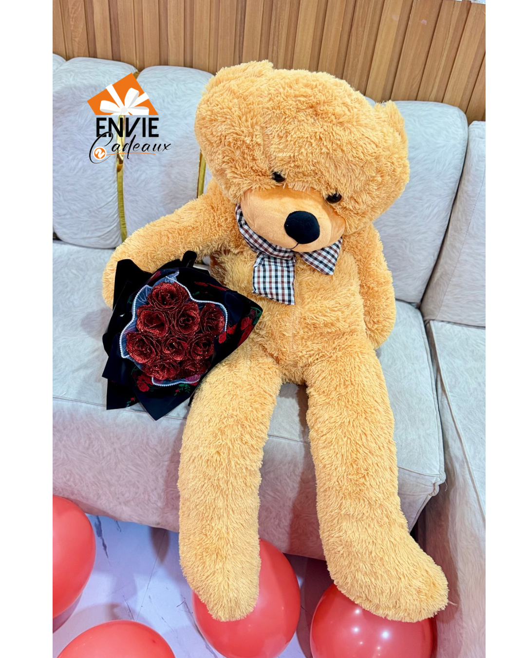 Peluche marron 1m4 et bouquet